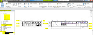 _Vue de travail > à gauche en jaune les niveaux du fichier lié (Rez, Etage, Toiture terrasse)